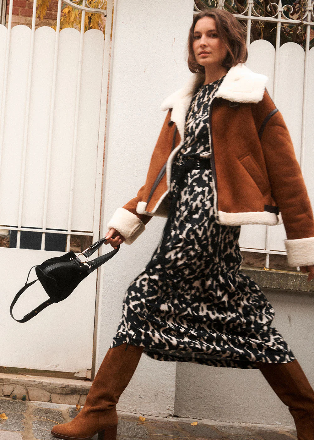 Ce blouson bomber fourré terracotta, avec son zip frontal, est idéal pour vos looks d’hiver. Sa doublure fourrée assure chaleur et confort, tandis que la teinte terracotta apporte une touche moderne et chaleureuse. La coupe bomber, légèrement oversize, ajoute un style tendance et décontracté, parfait pour la saison froide